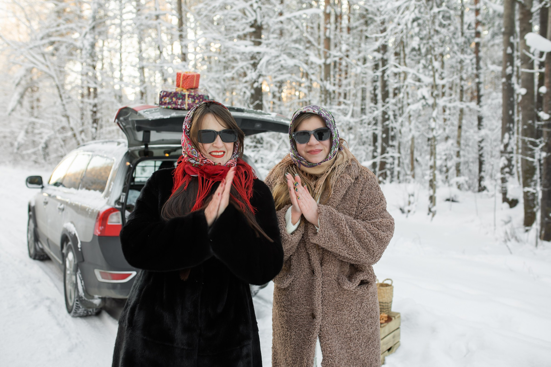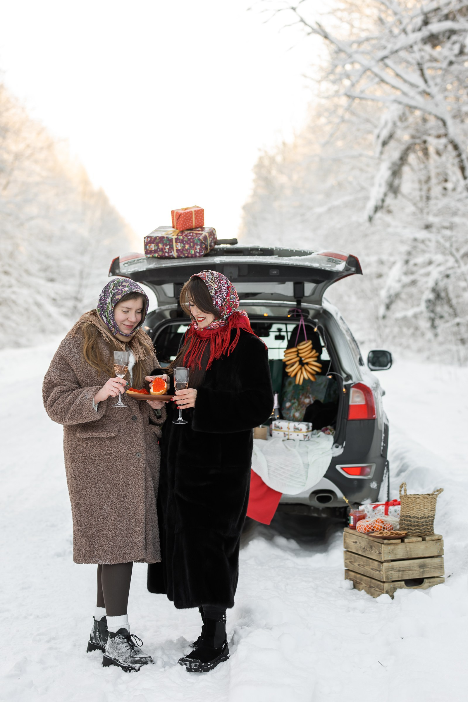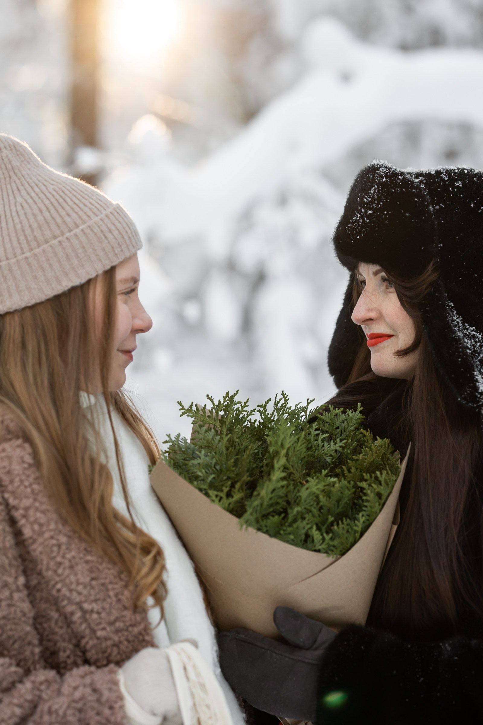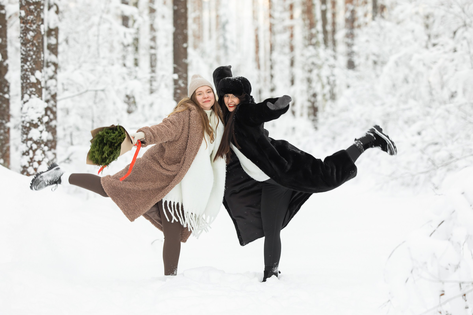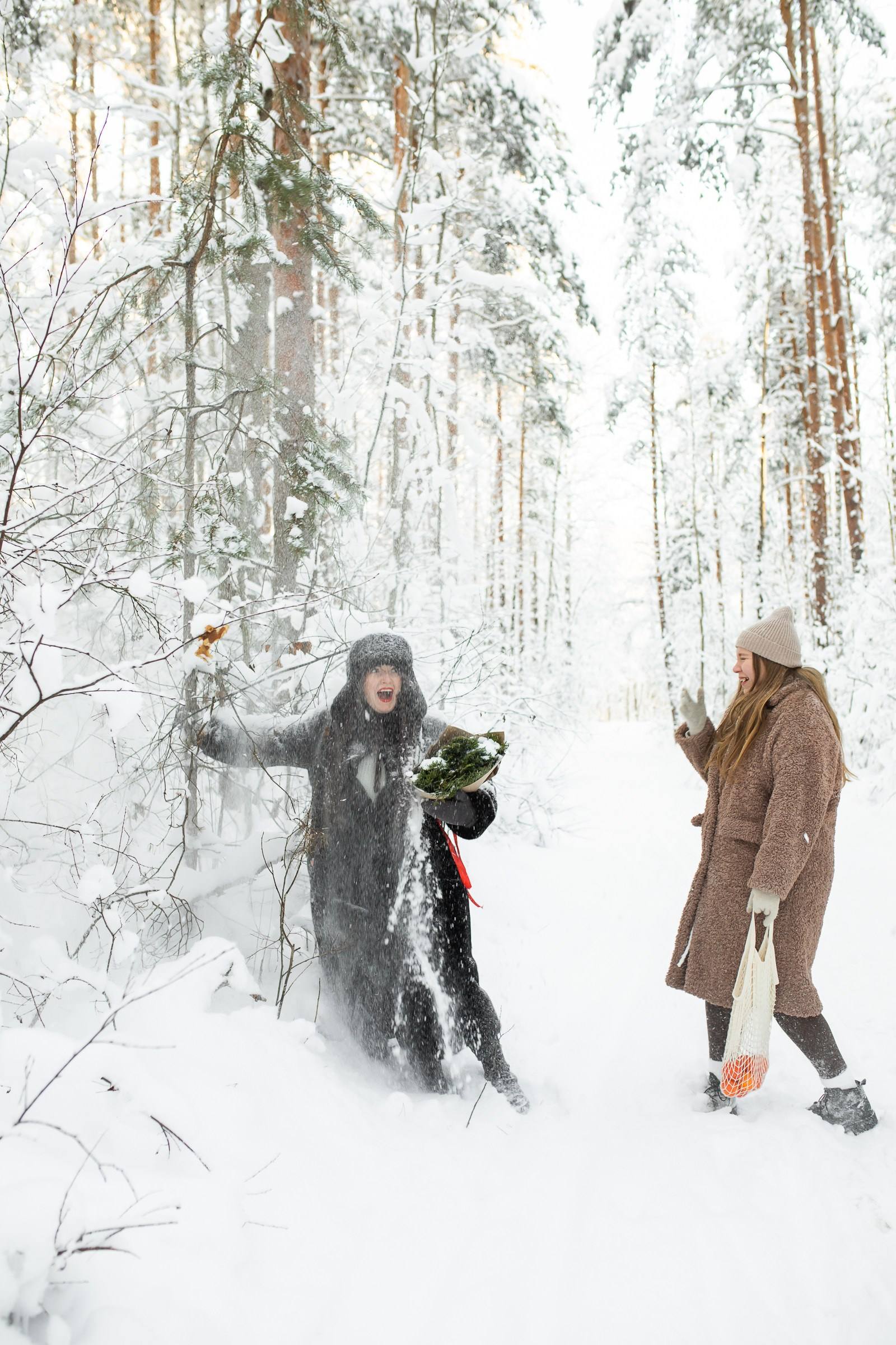 Анастасия и Юлия в зимнем лесу.