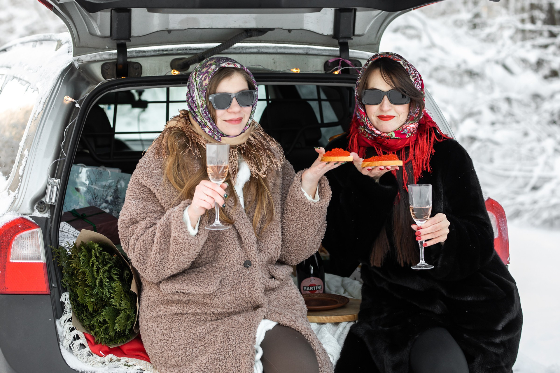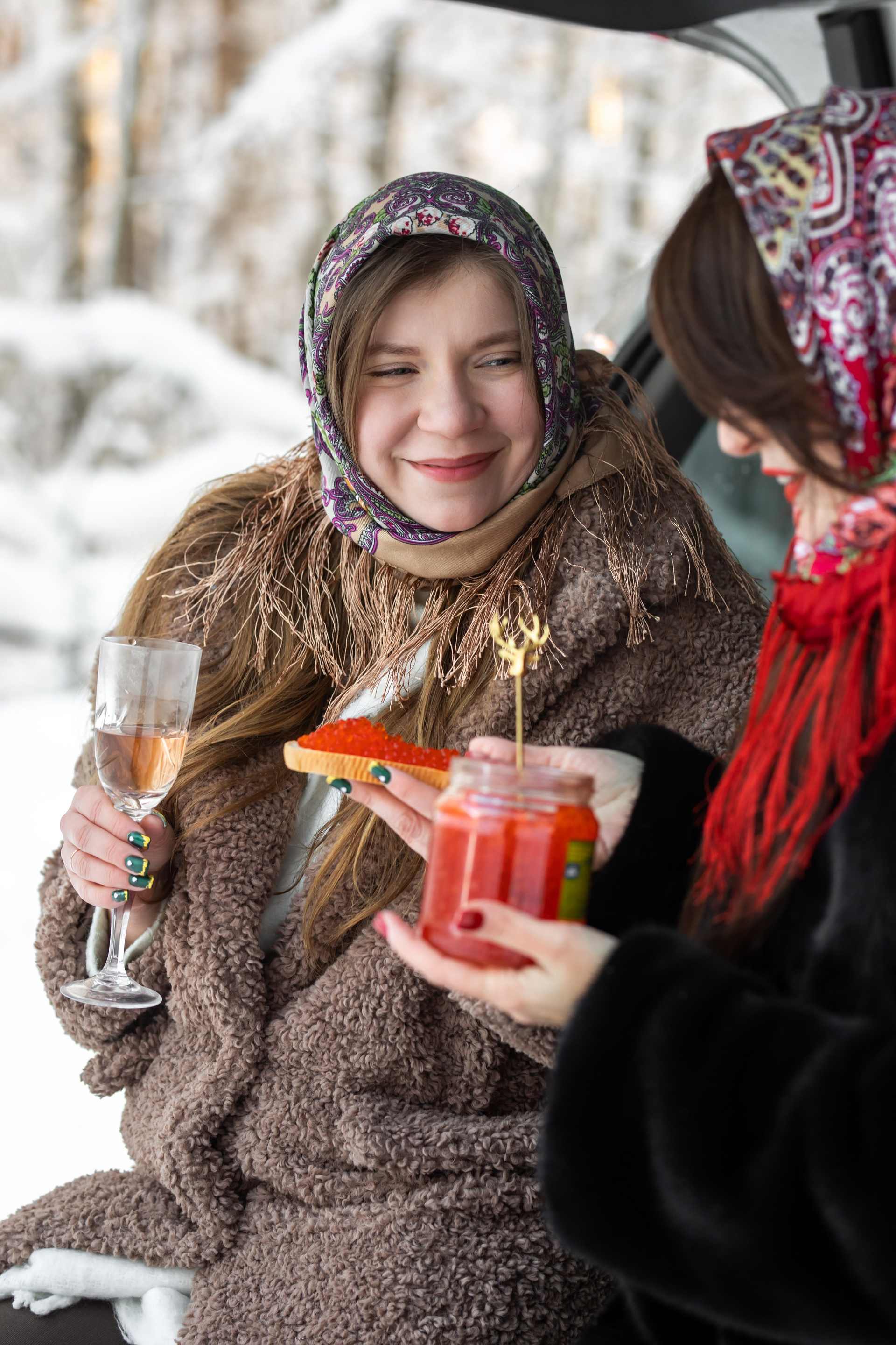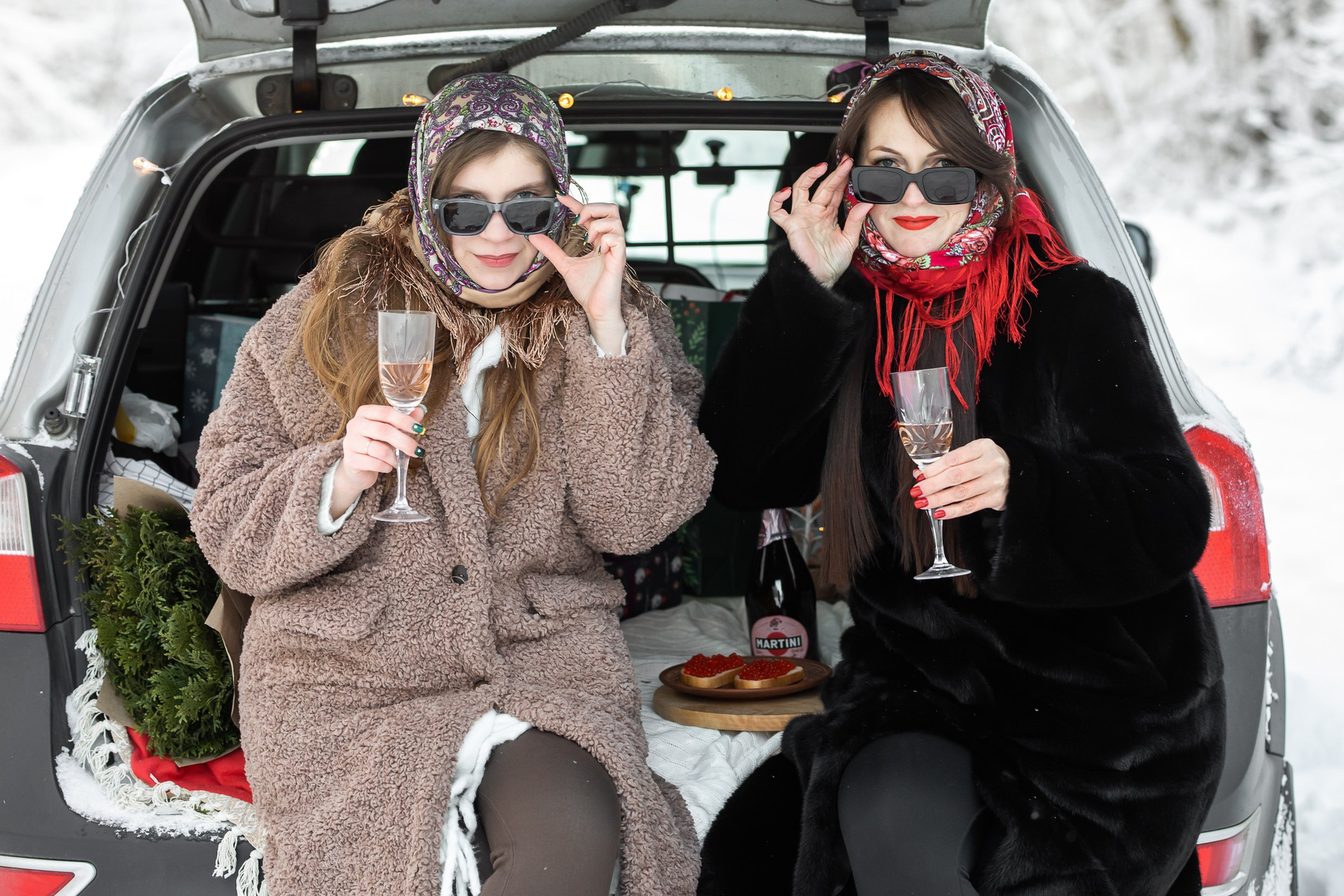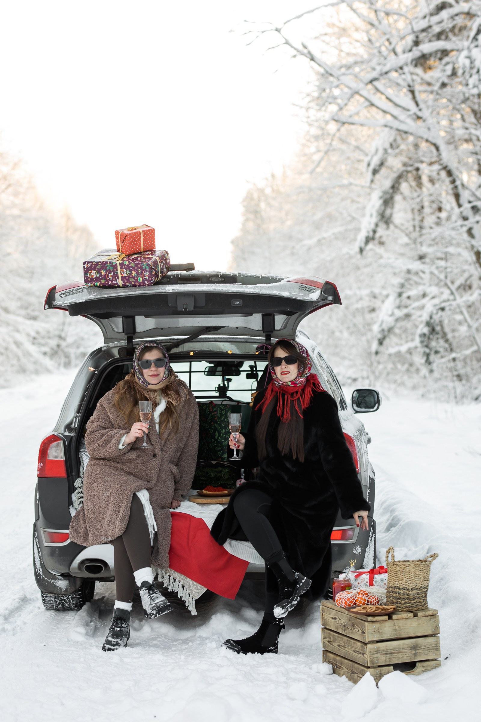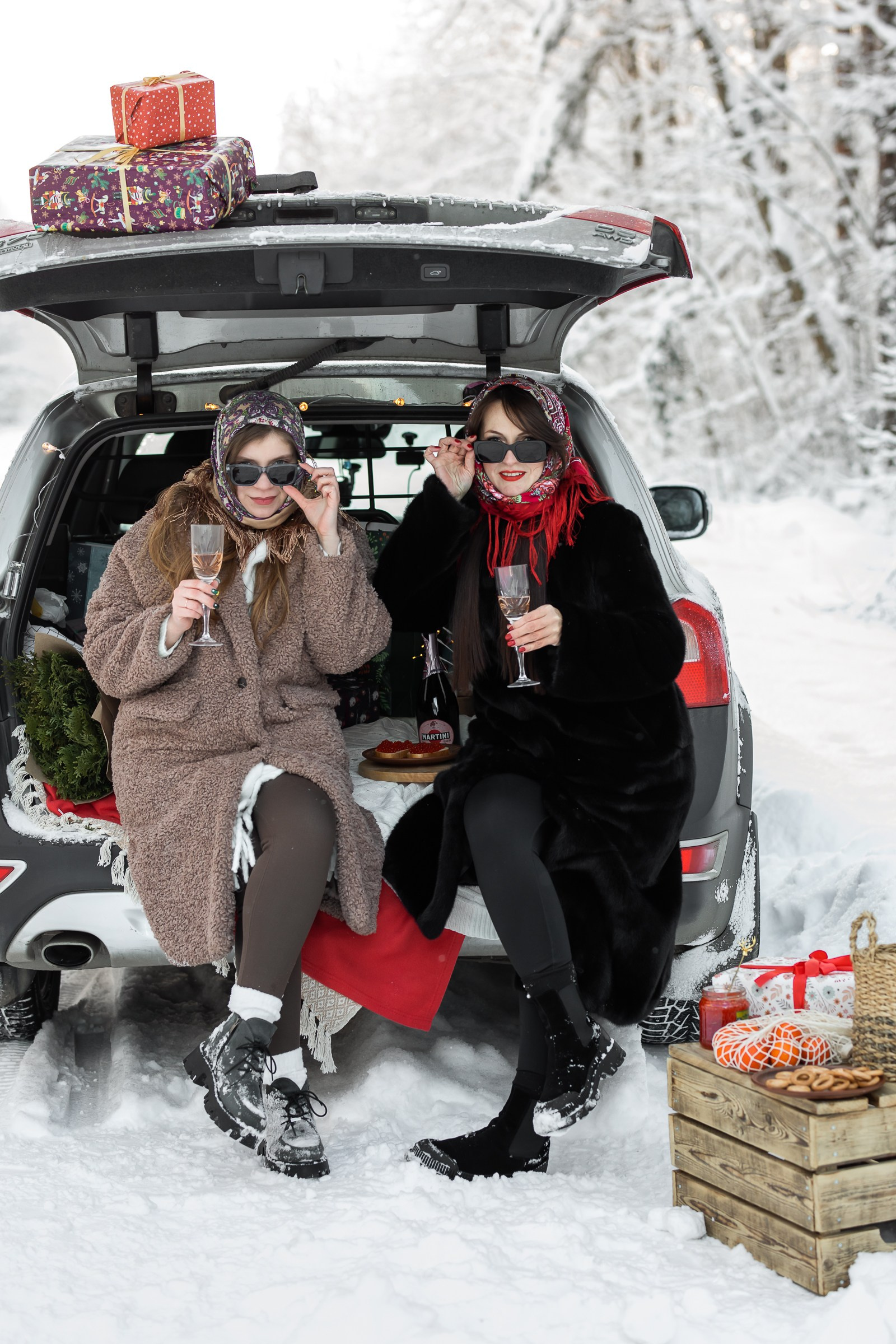 Анастасия и Юлия в зимнем лесу.