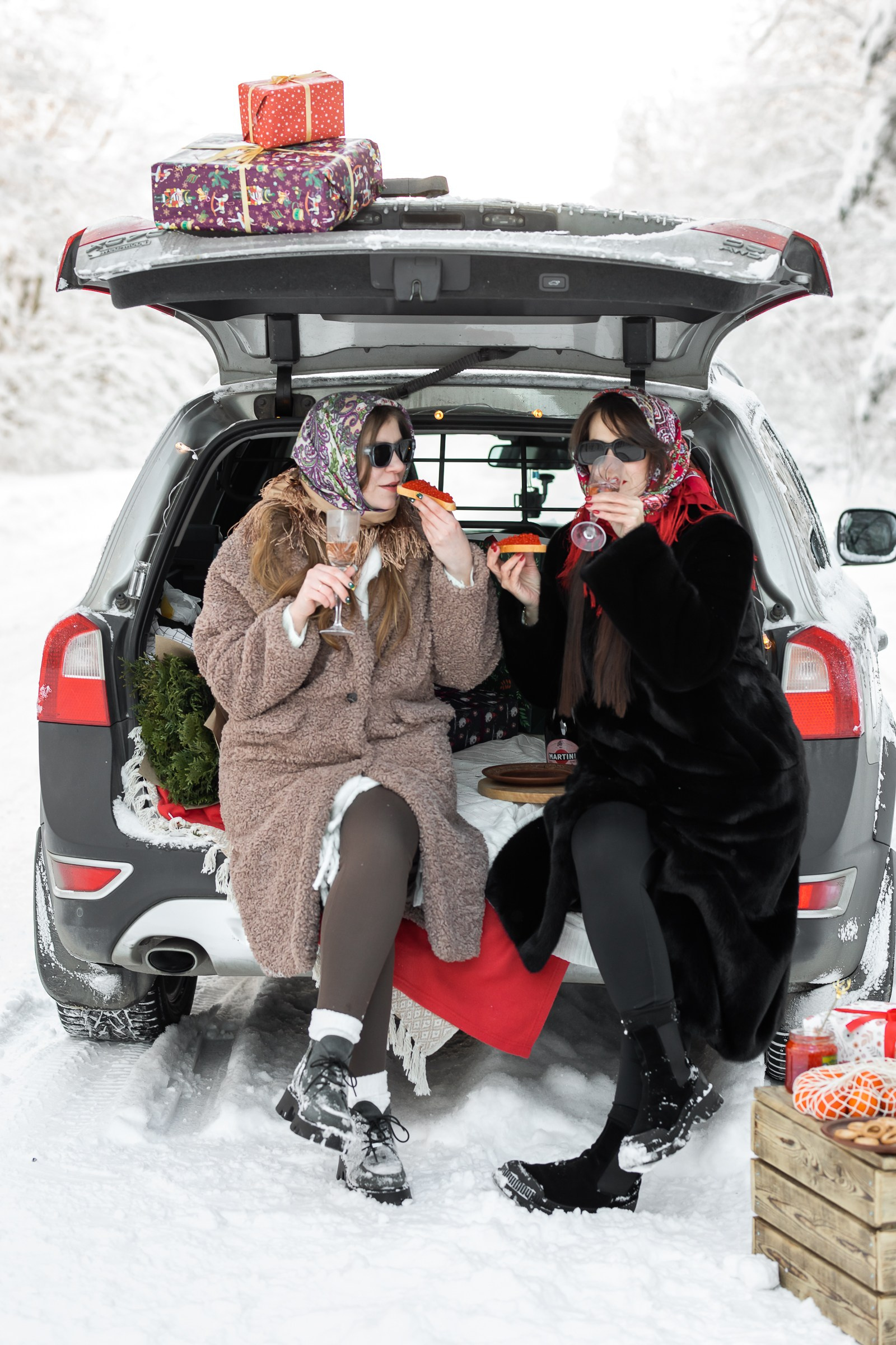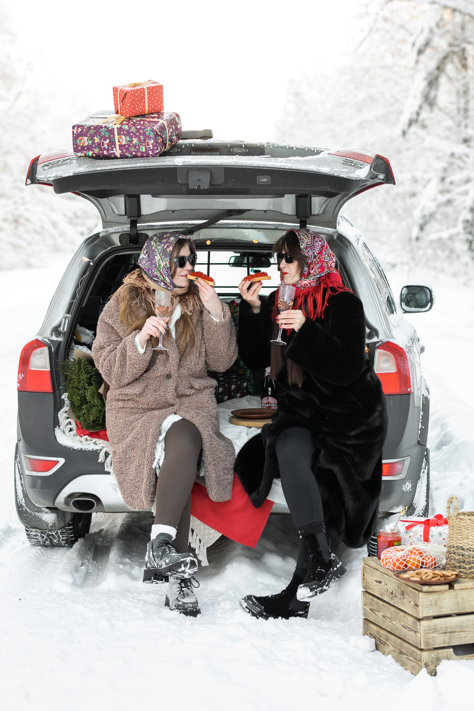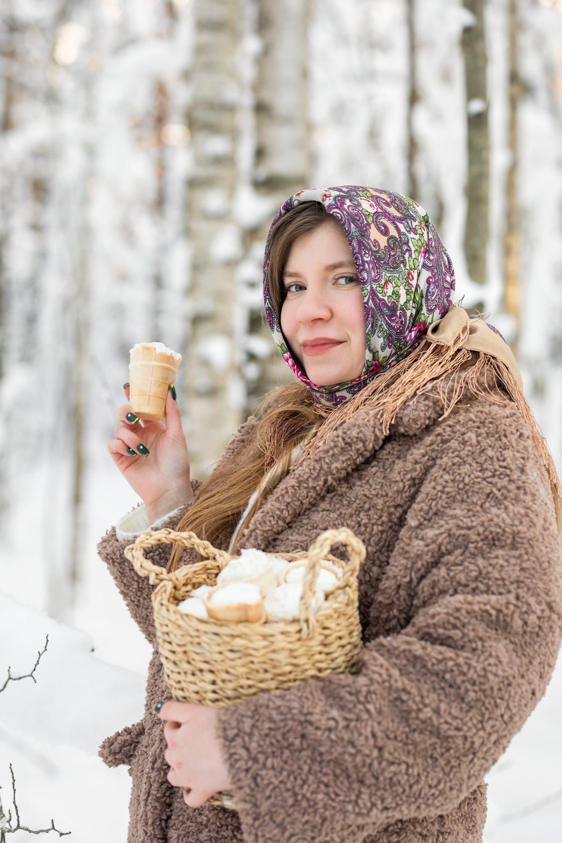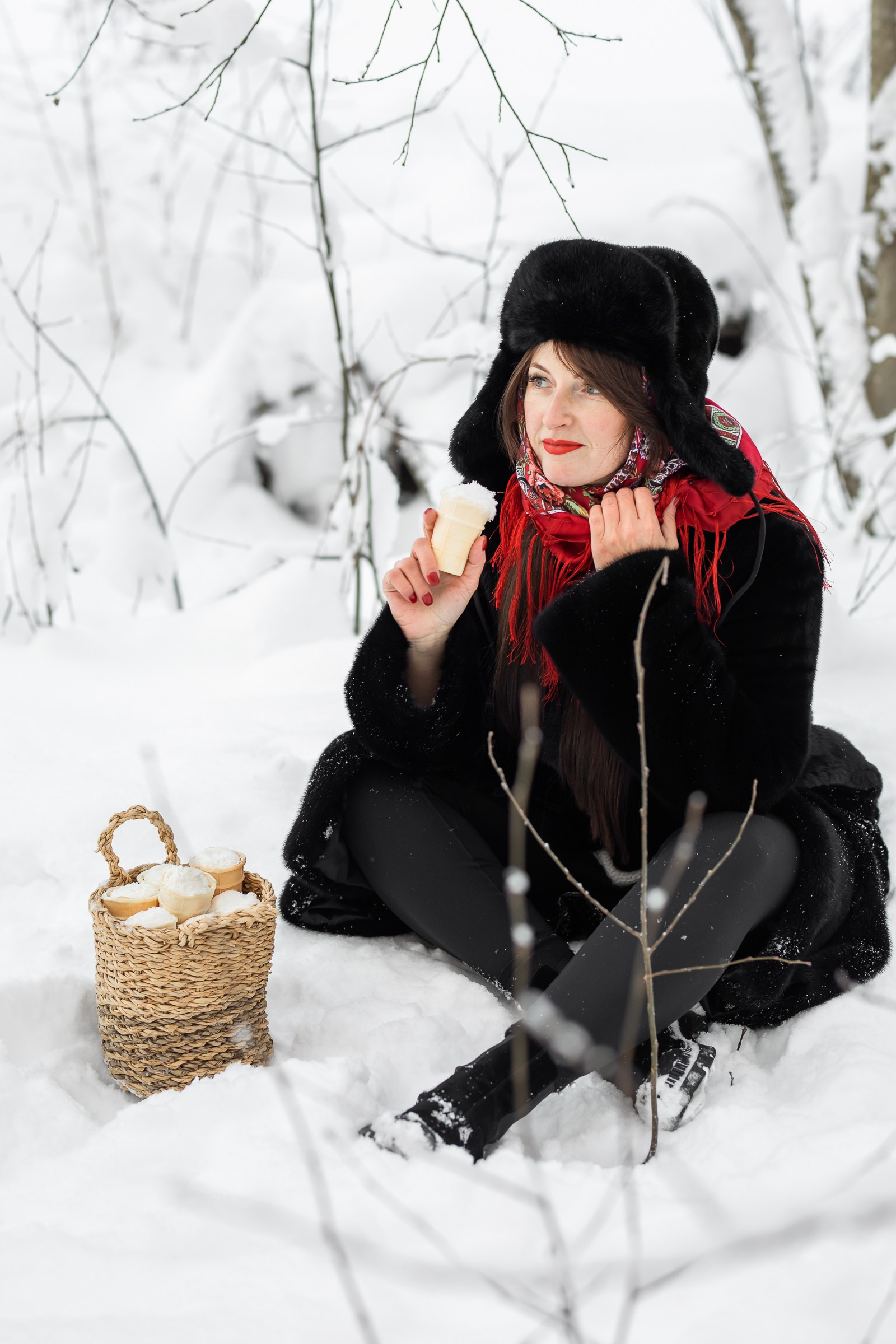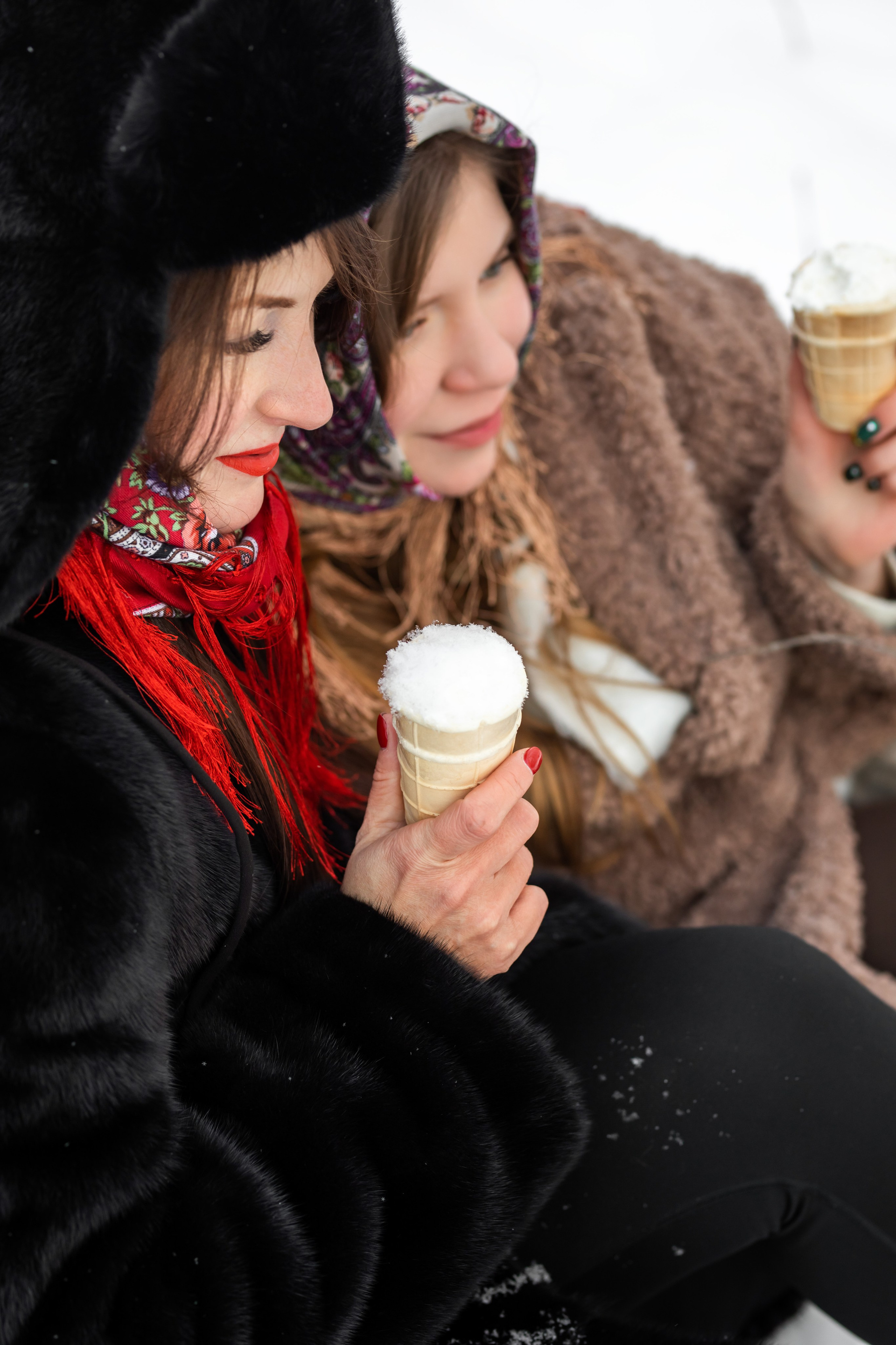 Анастасия и Юлия в зимнем лесу.